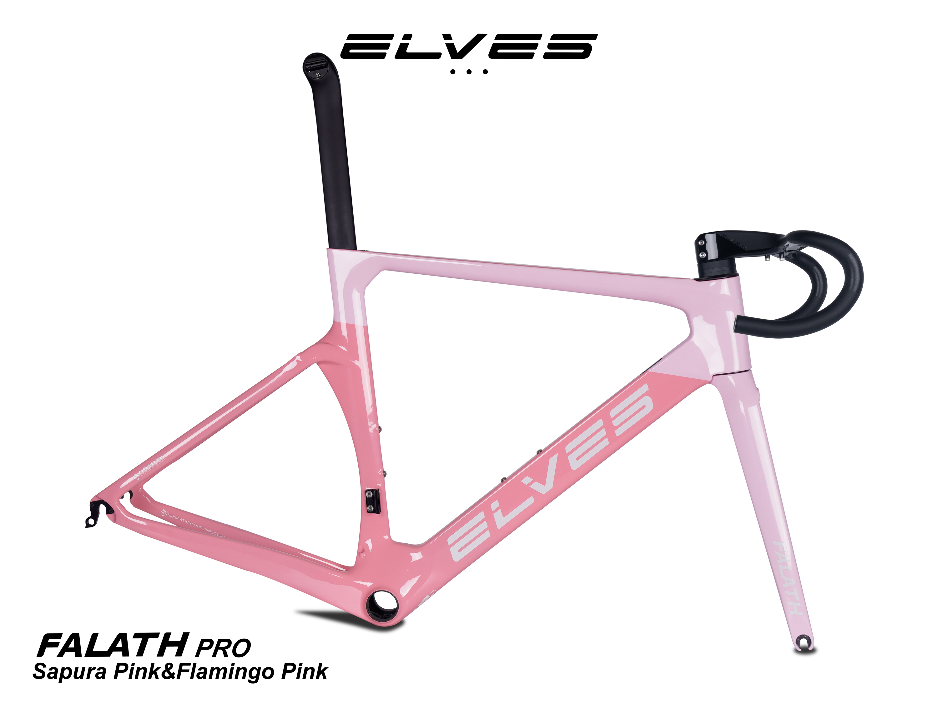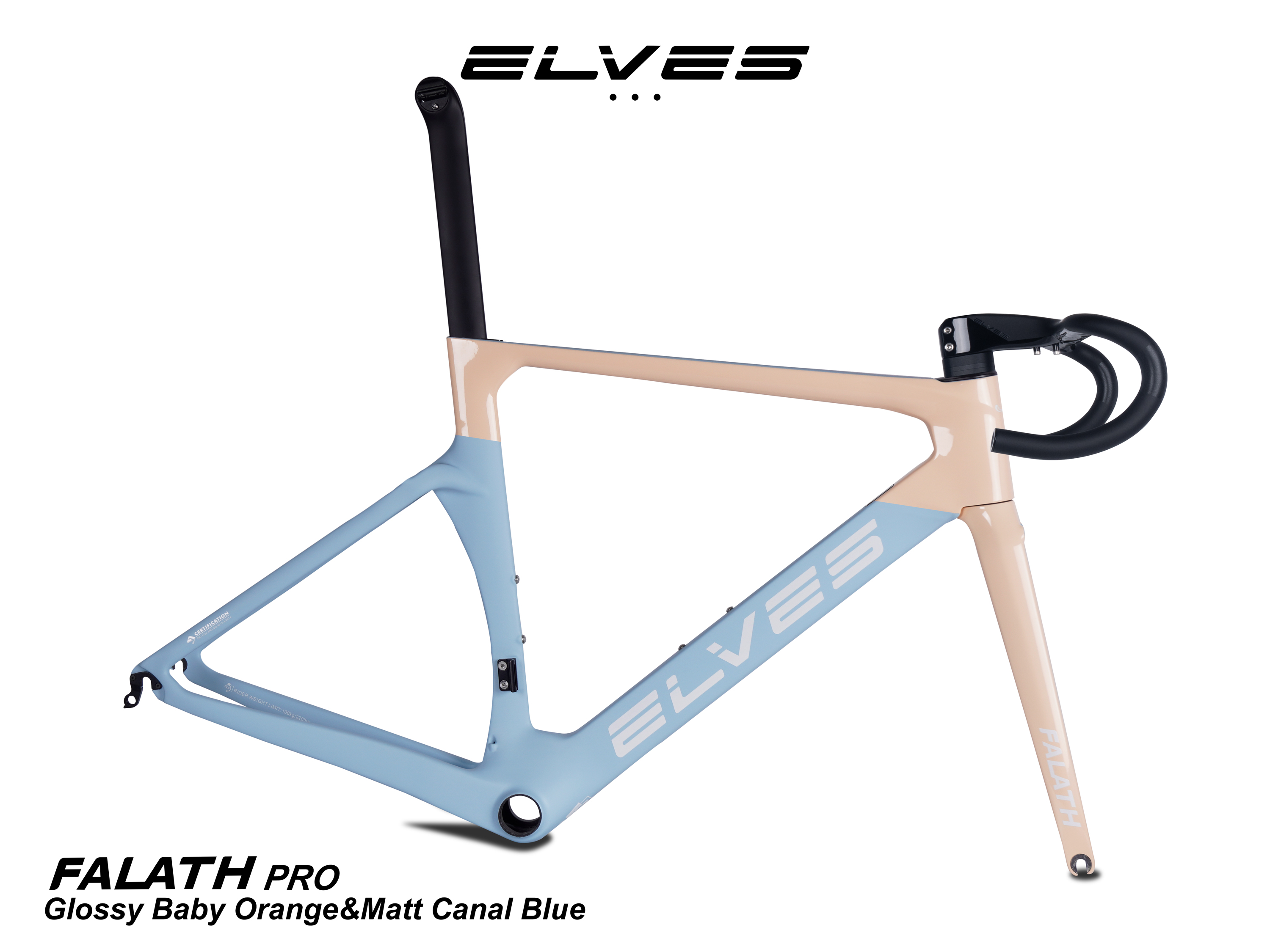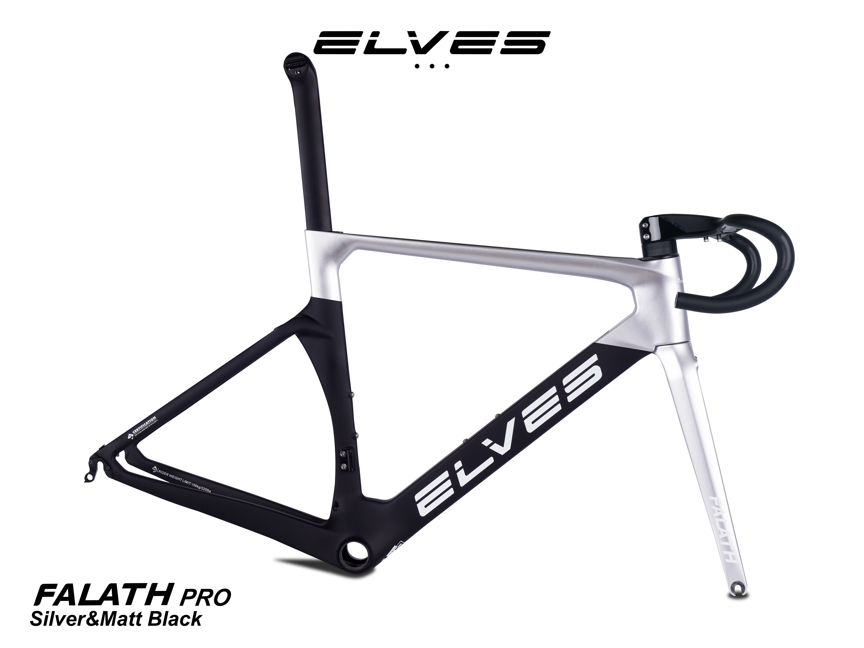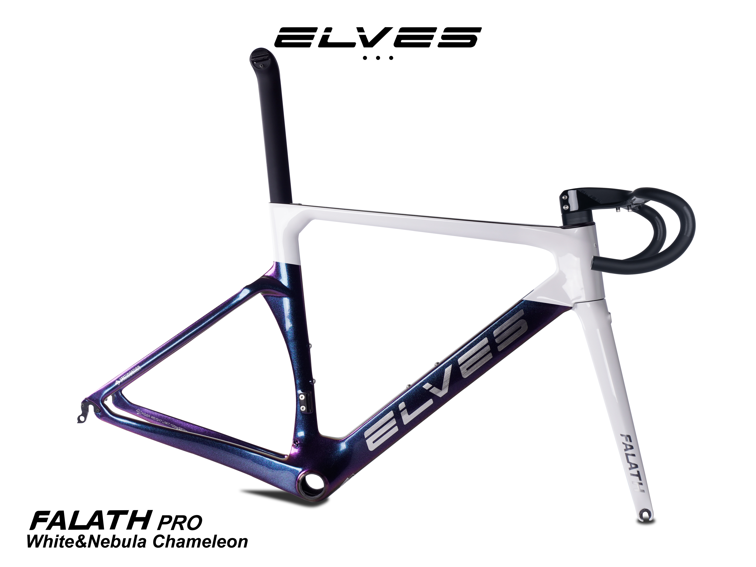 The 2022 Elves Falath Pro is a lightweight aero road frame crafted from high-modulus T800 and T1000 carbon fibers. Designed for rim brakes, it features integrated cable routing, a full-carbon fork, and is compatible with both mechanical and electronic drivetrains.