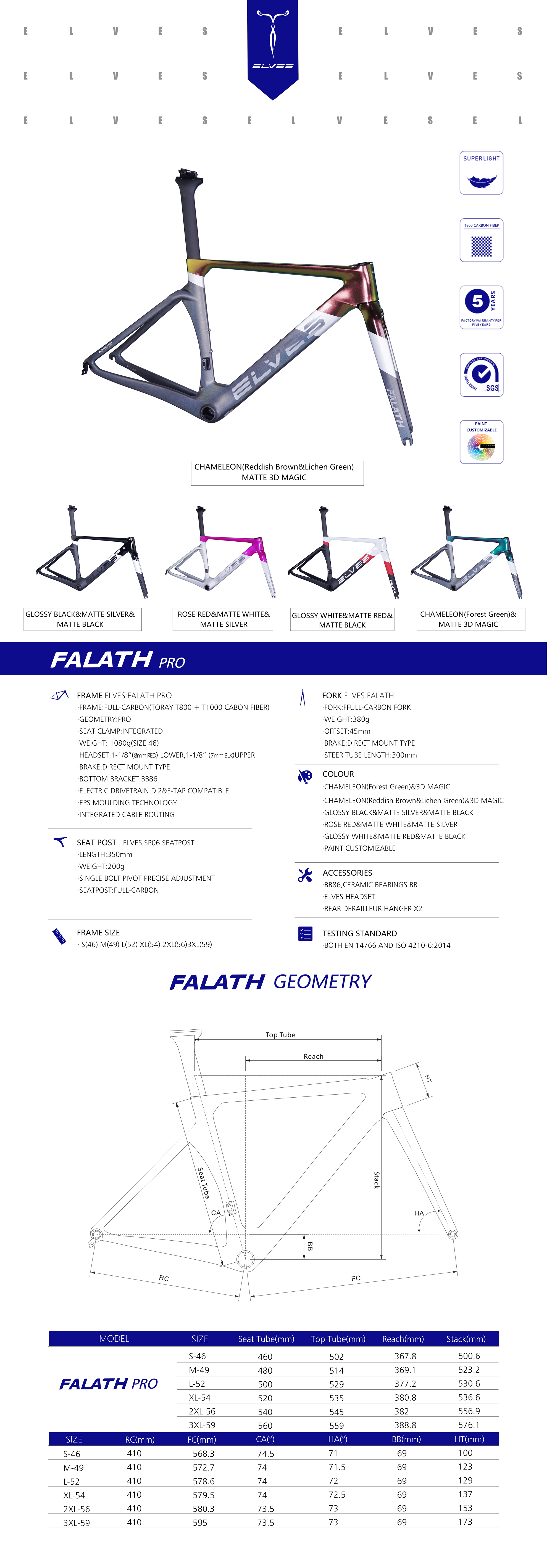 Elves Falath Pro Carbon Rim Brake Road Aero Framesets