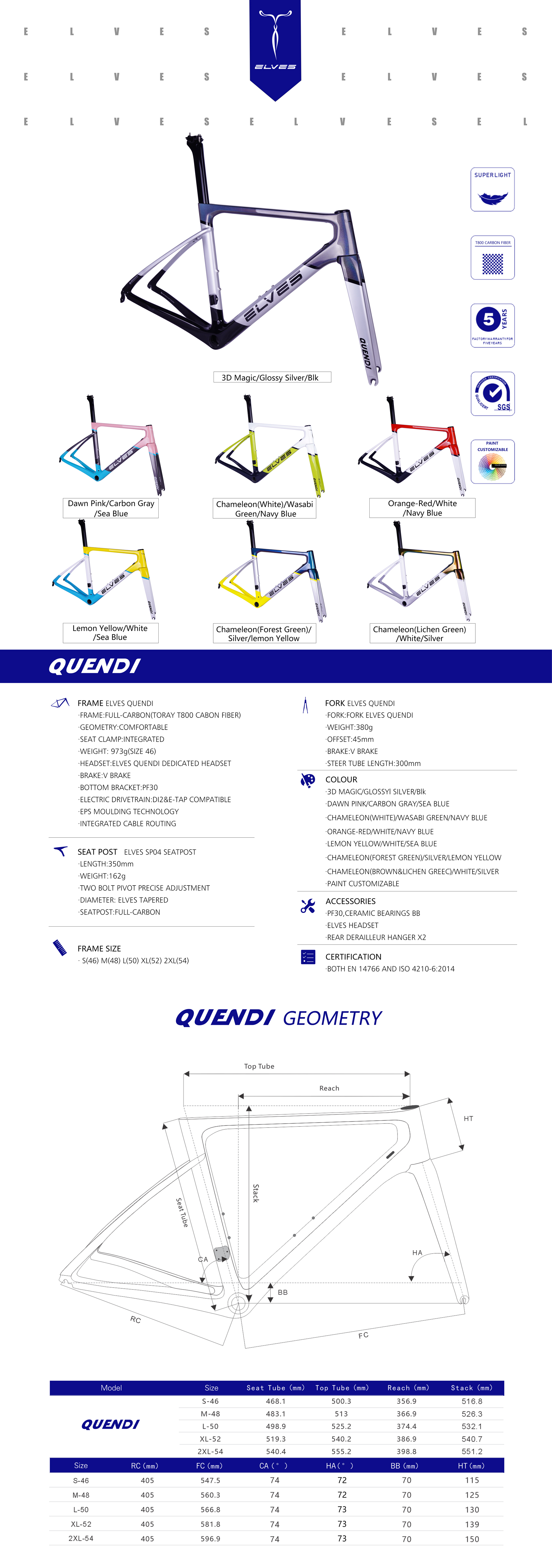 An entry‑level carbon fibre bike frame weighing 973 g (size 46), featuring comfortable geometry, EPS moulding, V‑brake support, integrated routing and Di2/e‑Tap compatibility.