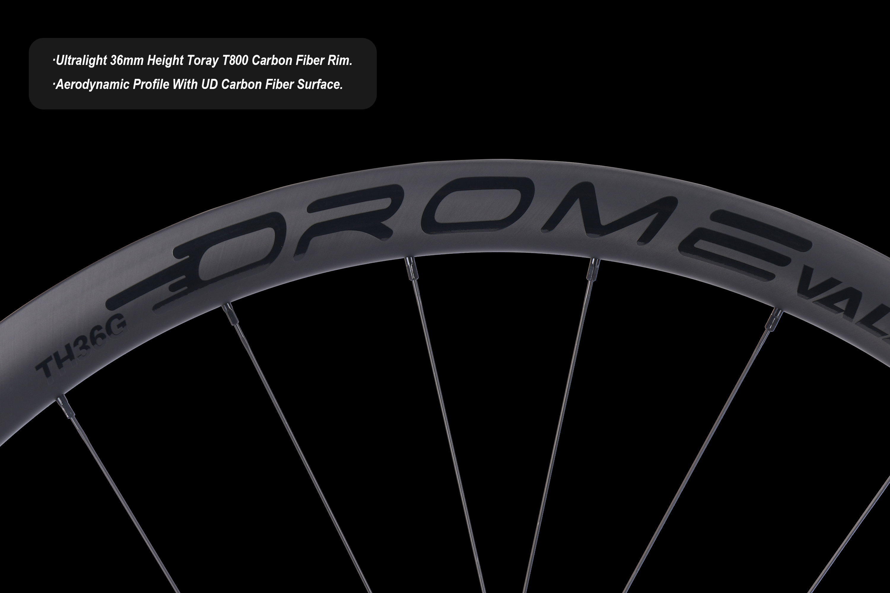 TH36G wheelset is second to none in terms of value, reliability, weight and efficiency. Our ultra-light rims, designed with high tensile strength carbon fiber at the most crucial points to improve stiffness. Our "lay-up" process offers a consistent rim wall thickness with more layers. These elements produce a lighter. stronger wheel..
