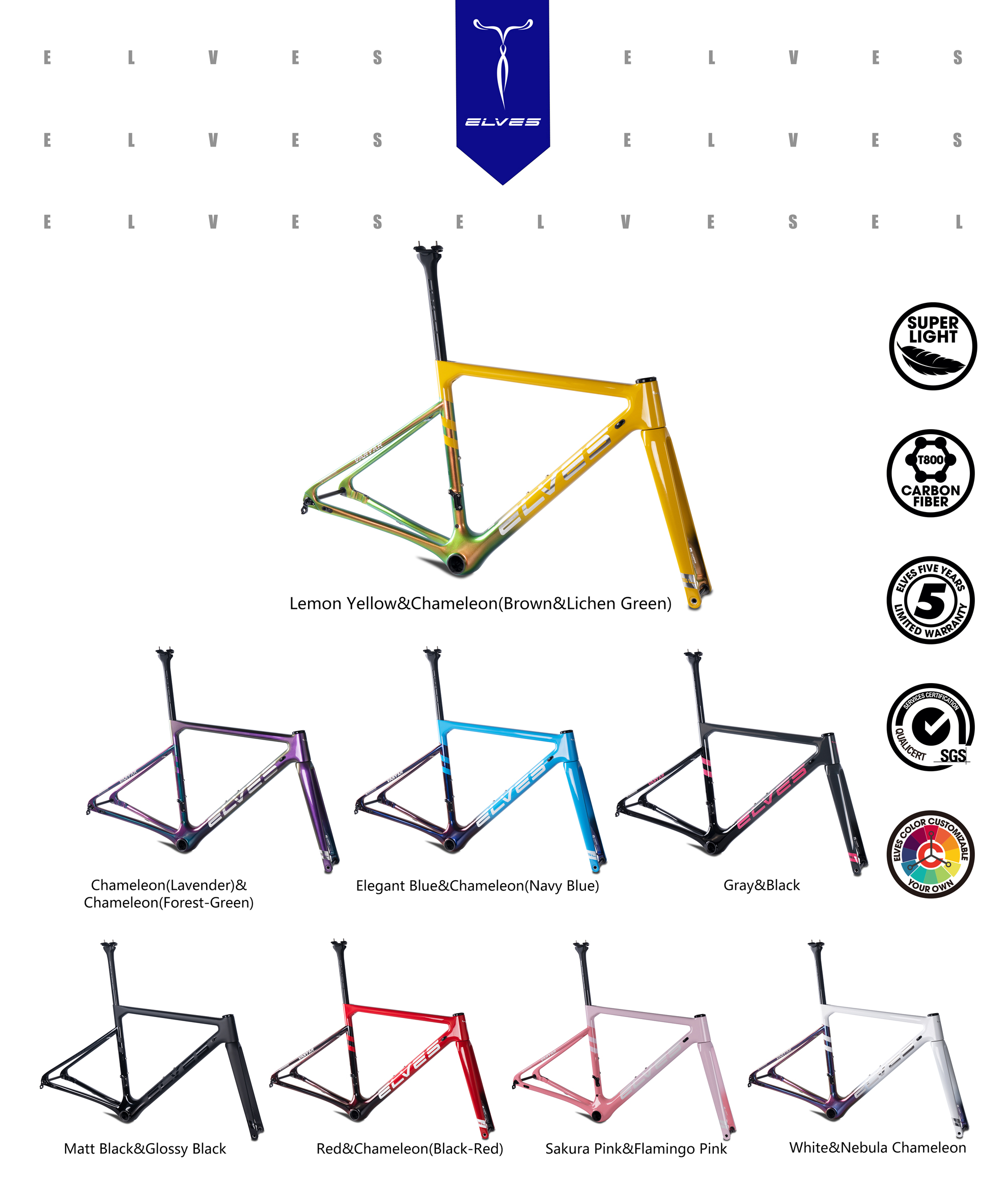 2022 ELVES VANYAR Full Carbon DISC Road Framesets, Superlight Disc Road Frame