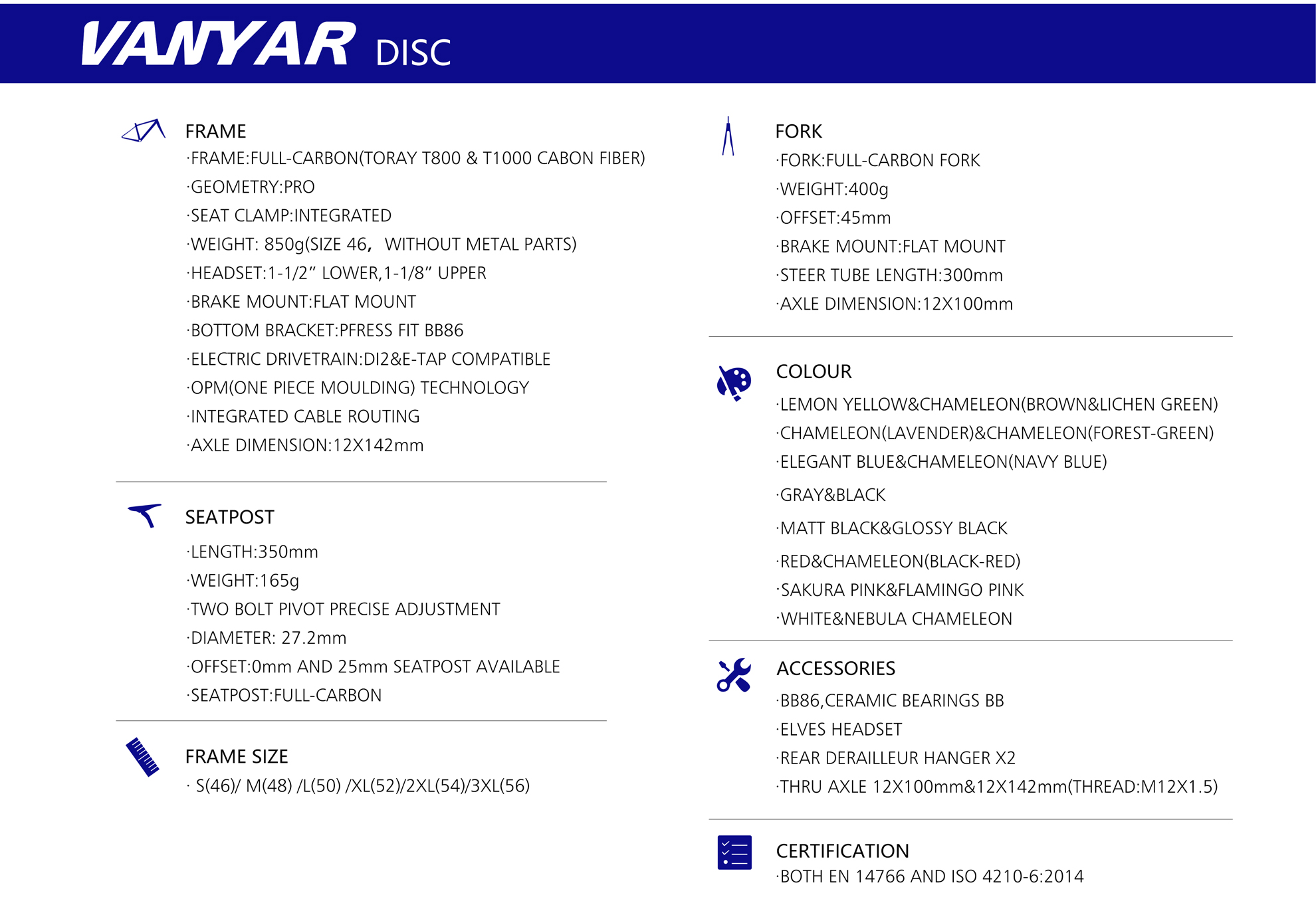 VANYAR DISC CARBON ROAD FRAMESET