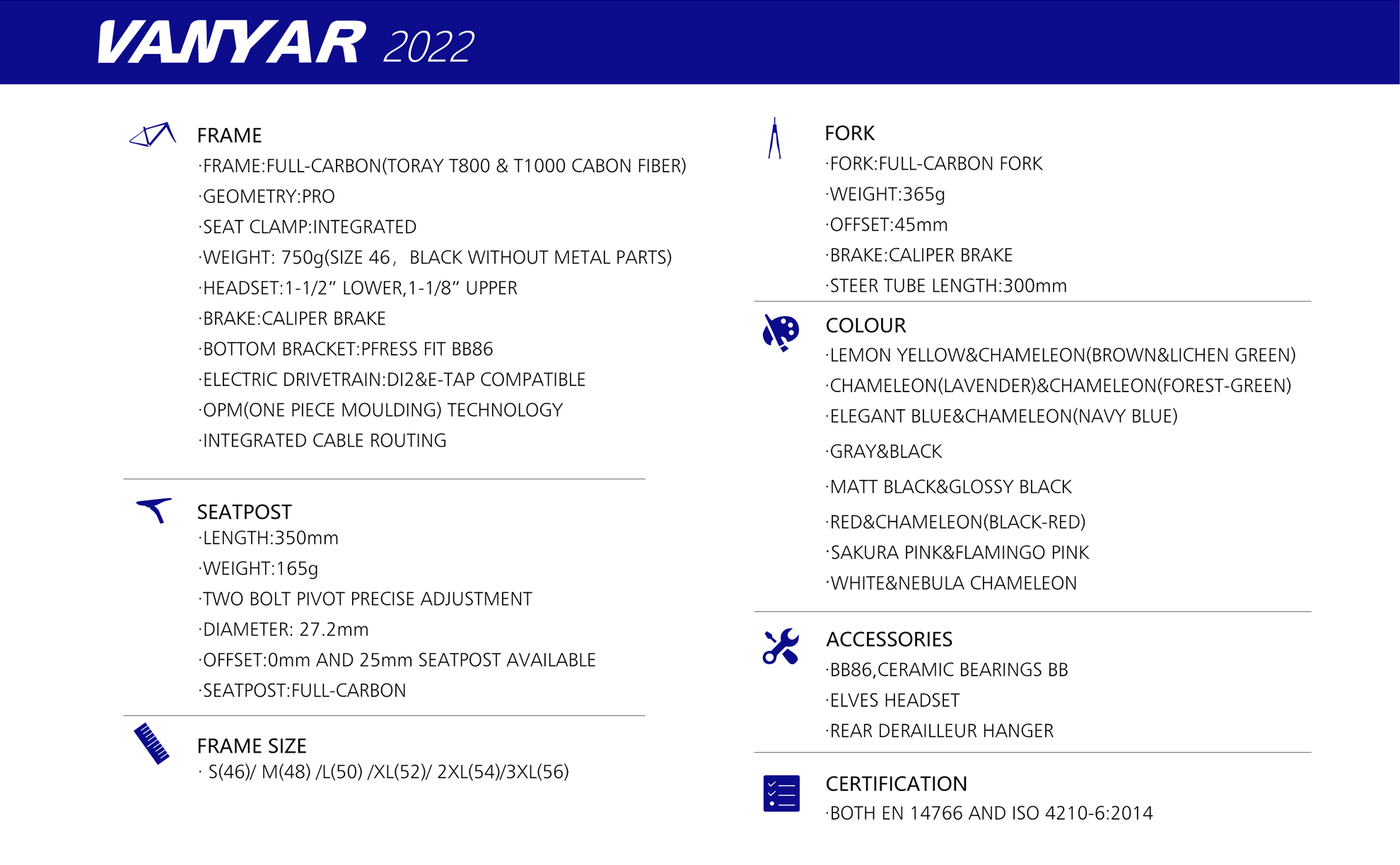 UCI Approved! ELVES Vanyar Carbon SuperLight Road Framesets